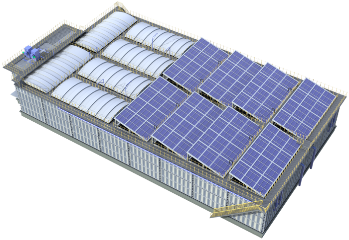 省錢、省事、省力、省心——華騏環(huán)保Sup-ASS模塊化裝配式水廠正以一種極簡的方式逐步顛覆傳統(tǒng)的污水廠鋼砼結(jié)構(gòu)非標準化的建造模式。Sup-ASS裝配式水廠采用標準化鋼制模塊預(yù)制拼裝,結(jié)構(gòu)優(yōu)化模擬,智能化流水線生產(chǎn),使預(yù)制模塊高度標準化、精度高、拼裝靈活。預(yù)制模塊系自動模壓波紋板模塊,平頂正弦波波形,相對于梯形或矩形結(jié)構(gòu),它的結(jié)構(gòu)更穩(wěn)定、強度更高、材料更省,因此較之混凝土構(gòu)筑物的造價更有優(yōu)勢。Sup-ASS裝配式水廠運輸及施工方便靈活,不受運輸尺寸、構(gòu)筑物體積、污水處理工藝的限制,可以像積木一樣根據(jù)項目的實際需求進行自由的組合;Sup-ASS裝配式水廠所有模塊由螺栓與鎖扣緊固連接、拆裝方便,可重復使用,即使遇到規(guī)劃調(diào)整的情況,整廠亦可拆卸搬遷,循環(huán)使用率可達100%;Sup-ASS裝配式水廠工期較之傳統(tǒng)水廠可縮短70%左右,比如,日處理量5萬噸的傳統(tǒng)鋼砼結(jié)構(gòu)水廠建設(shè)周期至少需要一年左右的時間,而Sup-ASS無需焊接,螺栓拼裝,僅三個月便可完工通水。Sup-ASS裝配式水廠標準化設(shè)計、智造的生產(chǎn)方式,單元模塊化拼裝方式,使施工全過程無污染真正做到綠色低碳,契合30、60碳達峰碳中和目標,實現(xiàn)傳統(tǒng)環(huán)保工程模式的顛覆。