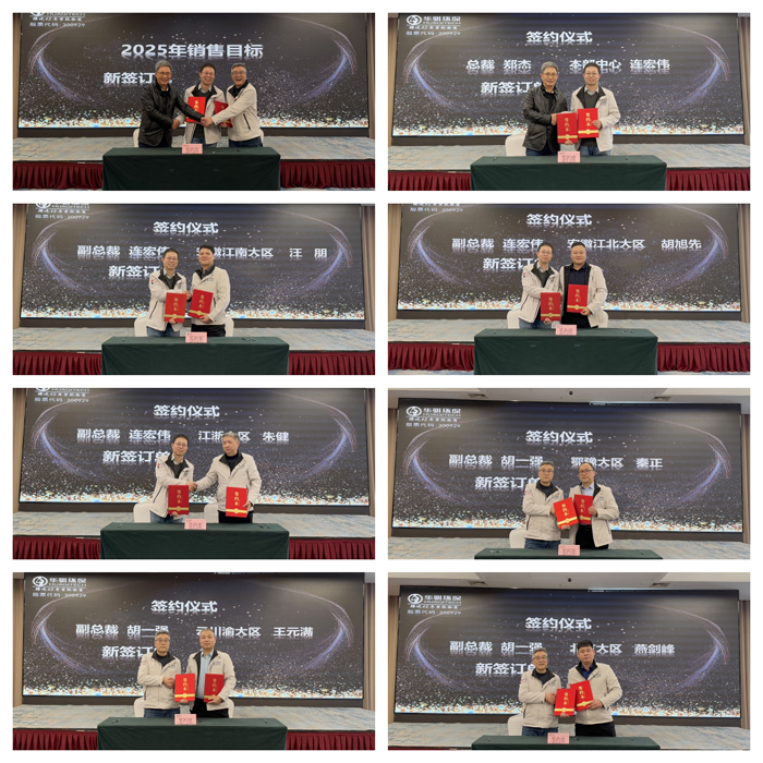 在隨后的市場(chǎng)經(jīng)營(yíng)及品牌推廣工作匯報(bào)環(huán)節(jié)中,市場(chǎng)本部中心、安徽江南大區(qū)、安徽江北大區(qū)、江浙大區(qū)、鄂豫大區(qū)、云川渝大區(qū)、北方大區(qū)、品牌管理部的代表共同總結(jié)2024年市場(chǎng)環(huán)境及指標(biāo)完成情況。會(huì)議指出,市場(chǎng)部門要以國(guó)家“數(shù)字化”戰(zhàn)略為導(dǎo)向,以“智慧引領(lǐng)未來”為主線,制定行之有效的產(chǎn)品推廣計(jì)劃并予以貫徹執(zhí)行,是為2025年的重點(diǎn)工作。匯報(bào)結(jié)束后,市場(chǎng)各大區(qū)舉行了2025年銷售目標(biāo)簽約儀式。