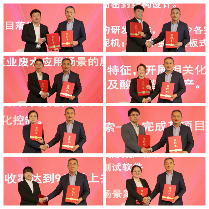 盛典在市經(jīng)開區(qū)管委會副主任方強(qiáng)的致辭中拉開了帷幕,在接下來的產(chǎn)品推介會上,來自裝配式水廠、深床反硝化濾池系統(tǒng)、高效/磁混凝系統(tǒng)、BAF智慧工藝、臭廢氣收集及處理系統(tǒng)、工業(yè)物聯(lián)智能控制產(chǎn)品及系統(tǒng)、魔方智水產(chǎn)品、環(huán)保非標(biāo)設(shè)備八個團(tuán)隊的產(chǎn)品經(jīng)理從市場角度出發(fā),分享了各自技術(shù)化產(chǎn)品的新功能、新亮點以及產(chǎn)生的效益,并規(guī)劃了2025年的市場工作、產(chǎn)品應(yīng)用場景擴(kuò)展、升級的思路及目標(biāo)。隨后,會議舉行了八位產(chǎn)品經(jīng)理與副董事長鄭俊簽約及市場銷售人員誓師儀式。