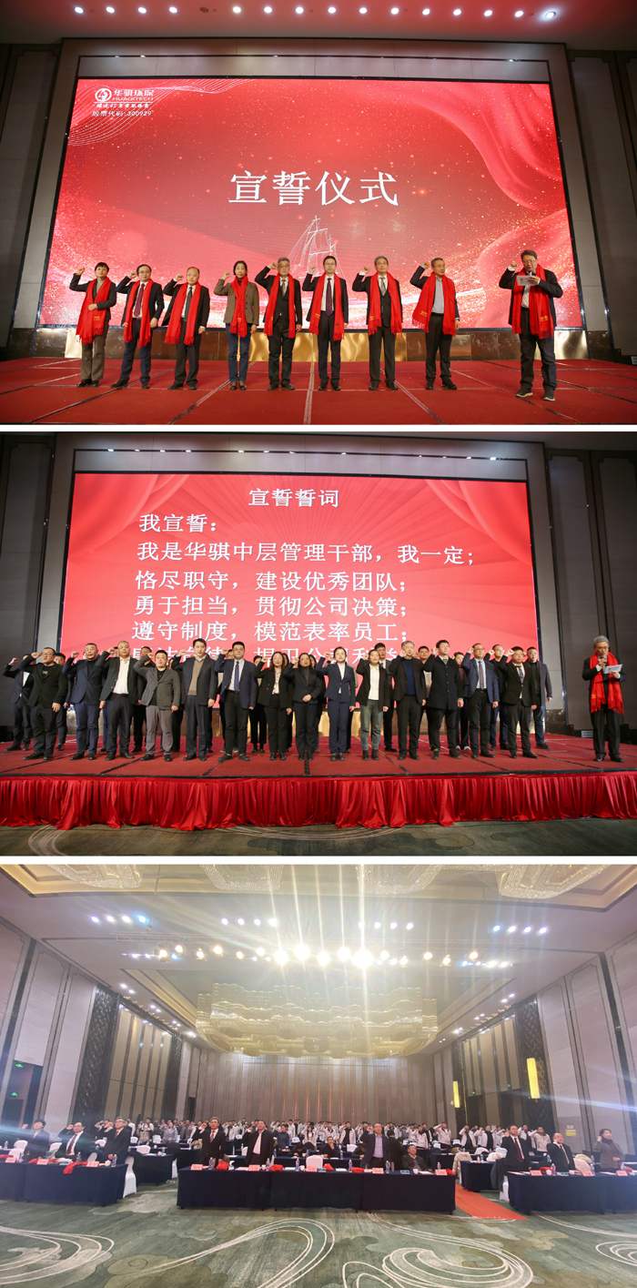 總裁鄭杰對2025年經(jīng)營工作的開展提出了部署,他通過基建潮退去、項目運(yùn)營負(fù)重前行、技術(shù)應(yīng)用的瓶頸、行業(yè)洗牌加劇等方面,分析了當(dāng)下的行業(yè)現(xiàn)狀。鄭杰指出,危機(jī)不是來自動蕩本身,而是來自延續(xù)以往的邏輯,環(huán)保企業(yè)的業(yè)務(wù)模式、技術(shù)研發(fā)和市場擴(kuò)張正遭遇空前的內(nèi)外壓力,2025 年的環(huán)保行業(yè),擺在企業(yè)面前的將是變革進(jìn)一步加劇的新局面。他強(qiáng)調(diào),新形勢下公司的發(fā)展,首先要夯實技術(shù)產(chǎn)品化,加大原創(chuàng)、高端產(chǎn)品的研發(fā),2024年技術(shù)產(chǎn)品化已初見成效,2025年要進(jìn)一步通過智慧化高端產(chǎn)品打造華騏持續(xù)的盈利能力;其次,要積極響應(yīng)國家“走出去”戰(zhàn)略,不出海、就出局;再次,布局未來風(fēng)口,華騏環(huán)保將在氫能產(chǎn)業(yè)的上游(制氫)、中游(儲運(yùn)氫)和下游(氫能綜合應(yīng)用)環(huán)節(jié)進(jìn)行全面布局,形成一條完整的產(chǎn)業(yè)鏈;最后,產(chǎn)品經(jīng)理、市場各部門、各子公司應(yīng)將創(chuàng)新思維置于戰(zhàn)略轉(zhuǎn)折工作的首要位置,找準(zhǔn)產(chǎn)業(yè)與服務(wù)轉(zhuǎn)型的著力點,提高執(zhí)行力,不斷創(chuàng)新業(yè)務(wù)模式與技術(shù)服務(wù)能力。演講結(jié)束后,會議進(jìn)行了高管、中層、員工的宣誓儀式,以及2024年度先進(jìn)個人及集體表彰。