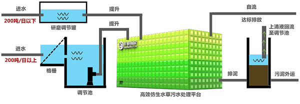 高效仿生水草污水處理平臺(tái)工藝流程圖