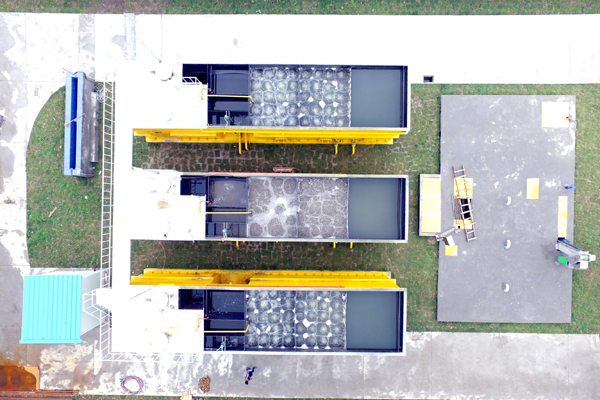 “高效仿生水草污水處理平臺(tái)”是針對鄉(xiāng)鎮(zhèn)、農(nóng)村等中小型污水處理項(xiàng)目開發(fā)的,是脫氮除磷村鎮(zhèn)污水處理專利技術(shù)(專利號ZL201310179893.6)的良好應(yīng)用。該平臺(tái)改變了現(xiàn)有很多小型生活污水處理裝置雖然結(jié)構(gòu)上實(shí)現(xiàn)了一體化,但附屬設(shè)備多、結(jié)構(gòu)不緊湊、抗沖擊負(fù)荷差等缺點(diǎn)。