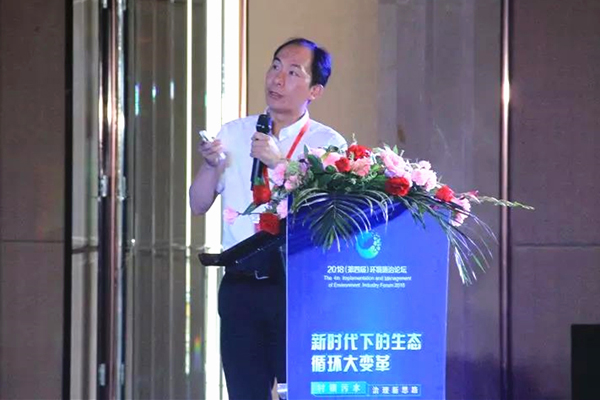 2018年6月14日,在2018(第四屆)環(huán)境施治論壇現(xiàn)場,安徽華騏環(huán)??萍脊煞萦邢薰驹O(shè)備事業(yè)群總經(jīng)理程曉虎向與會人員分享了他對美麗鄉(xiāng)村污水處理的解決方案的思考。