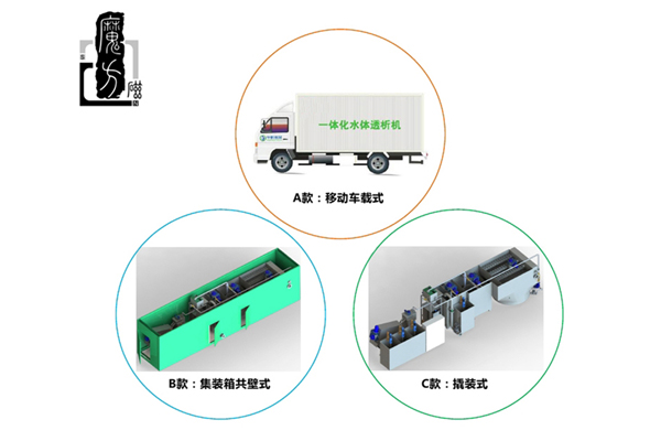 第一套系列產(chǎn)品——“魔方舟”,采用集裝箱結(jié)構(gòu),集生物處理、沉淀、消毒以及設(shè)備間于一體,是采用基于微生物凈化增強技術(shù)和水草仿生技術(shù)開發(fā)的泥膜耦合脫氮除磷技術(shù),這種技術(shù)最大的特點是微生物量大,同時能不斷自我更新活性高,使得系統(tǒng)耐沖擊負荷強、出水效果好;同時在產(chǎn)品定型過程中,不斷的進行故障測試,將污水處理長期運行過程中出現(xiàn)工藝故障形成解決方案固化到設(shè)備功能中去,同時盡可能優(yōu)化機電設(shè)備數(shù)量、提高品質(zhì),在降低運行能耗的同時最大限度減少系統(tǒng)故障點,實現(xiàn)無人值守。