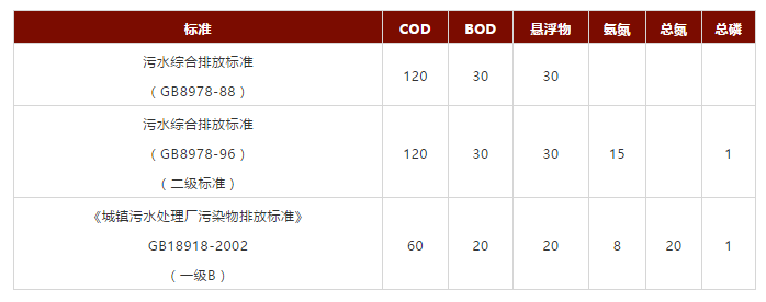 我國城鎮(zhèn)生活污水處理廠建設(shè)早期適用的是《污水綜合排放標(biāo)準(zhǔn)》,針對污水去向執(zhí)行不同級別的排放標(biāo)準(zhǔn)。第一個(gè)是GB8978-88版本,后來經(jīng)歷了一次修訂,出臺了GB8978-96版本。