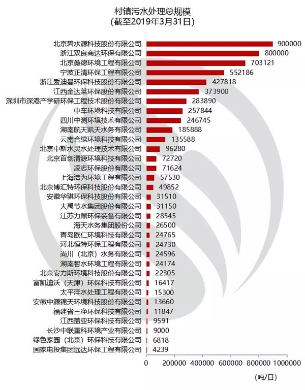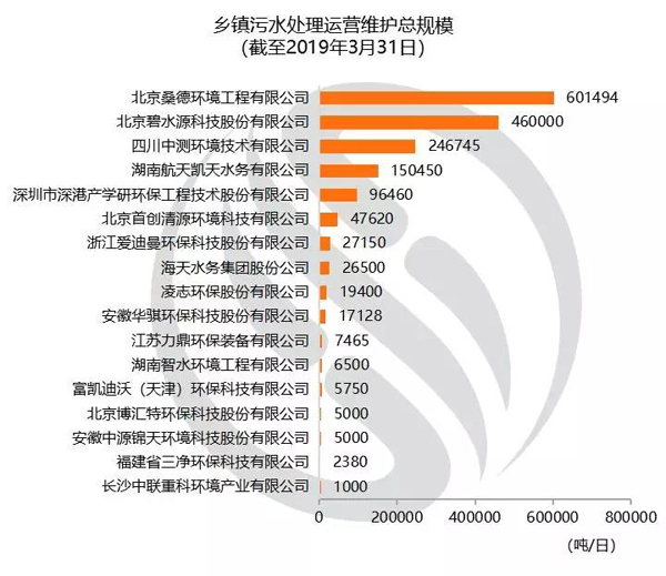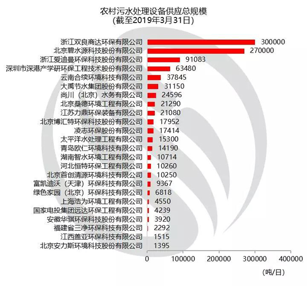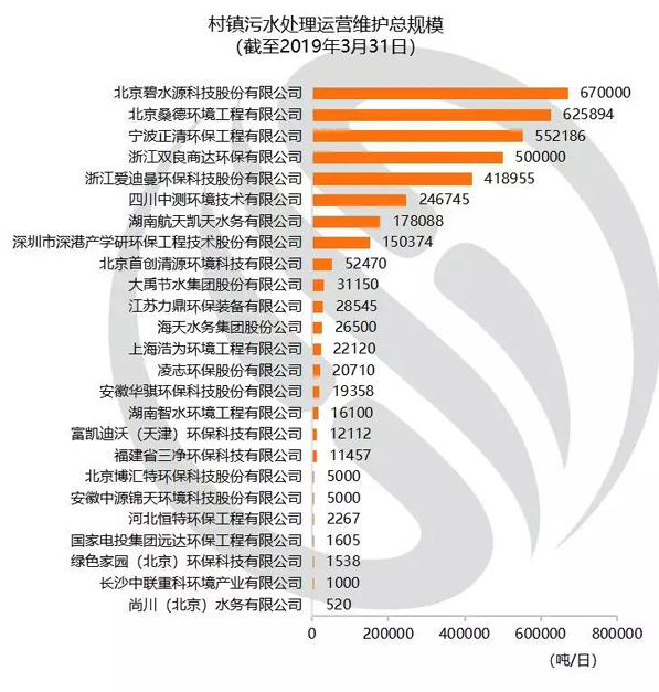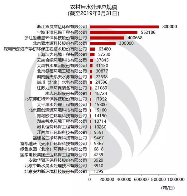 備注:該排名為企業(yè)中標(biāo)簽約且參與項(xiàng)目運(yùn)營(yíng)維護(hù)的農(nóng)村污水處理項(xiàng)目設(shè)計(jì)能力加總。