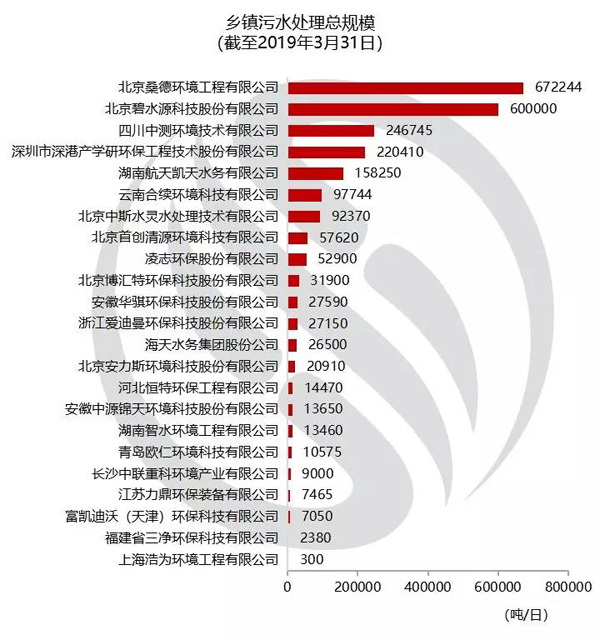 備注:該排名為企業(yè)中標(biāo)簽約的鄉(xiāng)鎮(zhèn)污水處理項(xiàng)目設(shè)計(jì)能力加總,包含企業(yè)參與的投資建設(shè)運(yùn)營(yíng)、委托維護(hù)、工程施工、設(shè)備供應(yīng)等環(huán)節(jié)的所有項(xiàng)目,并剔除重復(fù)計(jì)算等因素。
