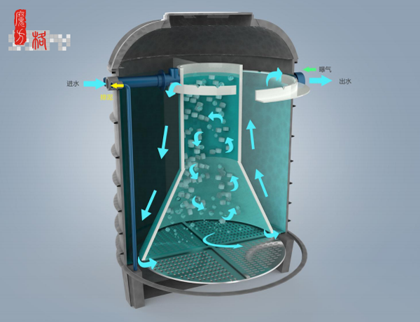 魔方格產(chǎn)品。主要是針對村落分散處理模式,單套5m3/d,可串并聯(lián)組合使用。裝備采用“渦輪循環(huán)往復(fù)泥膜耦合脫氮除磷技術(shù)”,它是利用渦輪反應(yīng)區(qū)的水氣動力形成高度流化并自流至缺氧厭氧區(qū)形成往復(fù)循環(huán)處理,實現(xiàn)有機物及氮磷的去除。其技術(shù)優(yōu)勢中部的流化床狀態(tài),傳質(zhì)效果好,微生物活性強,耐沖擊負(fù)荷強,去除效果穩(wěn)定;同時整個設(shè)備僅配置一臺進口氣泵,故障點少,運行節(jié)能穩(wěn)定。另外設(shè)備采用高分子材料一次成型,使用壽命長所以特別適合農(nóng)村小微場合應(yīng)用。