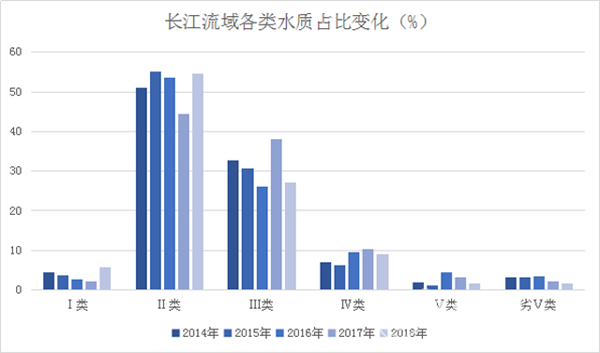 再者,在2014年至2018年的5年內(nèi),長江流域水質(zhì)變化如何呢?
