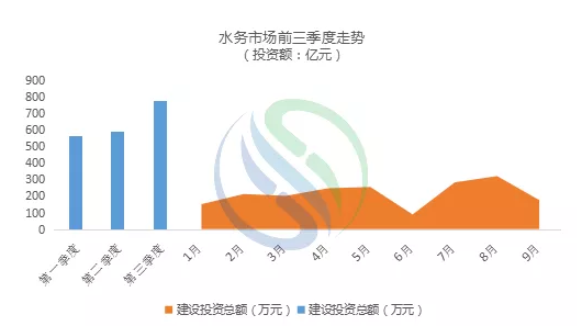 2019年前三季度整個(gè)水務(wù)市場(chǎng)情況,總規(guī)模達(dá)1930億元??傮w來(lái)說(shuō)前三季度水務(wù)項(xiàng)目勢(shì)頭強(qiáng)勁,尤其8月份,總規(guī)模超過(guò)了300億元,前三季度30億元的項(xiàng)目達(dá)10個(gè)。