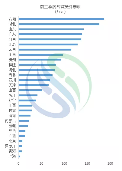 從全國(guó)范圍來(lái)看,胡煥庸線的右側(cè)的水務(wù)市場(chǎng)欣欣向榮,投資額排名靠前的省份多為胡煥庸線右側(cè)的省份。安徽、湖北、山東、廣東、河南、江蘇、云南,這7個(gè)省份的投資額已經(jīng)超過(guò)100億元,長(zhǎng)江大保護(hù)為長(zhǎng)江沿岸各省份水務(wù)市場(chǎng)打開(kāi)了一扇窗,安徽、湖北相繼出現(xiàn)多個(gè)大的水務(wù)項(xiàng)目,這兩個(gè)省份的投資額分別為186億元和176億元。