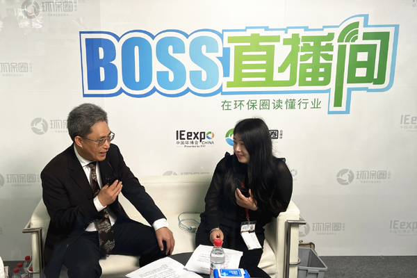 總裁鄭杰(左)在“中國(guó)環(huán)博會(huì)Boss直播間”接受采訪