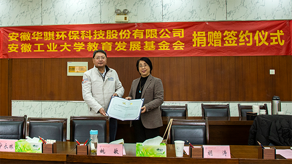 2022年1月14日,安徽華騏環(huán)保科技股份有限公司與安徽工業(yè)大學(xué)戰(zhàn)略合作簽約儀式在安徽工業(yè)大學(xué)會(huì)議中心舉行。華騏環(huán)保董事長(zhǎng)王健,副總胡一強(qiáng)、費(fèi)煜青,安工大副校長(zhǎng)顧明言,校友處處長(zhǎng)、教育發(fā)展基金會(huì)秘書長(zhǎng)甘亞,體育部黨總支書記、主任胡濤,工會(huì)主席姚敏,學(xué)生工作部(處)處長(zhǎng)何偉,團(tuán)委書記王菁,校友工作處副處長(zhǎng)、教育發(fā)展基金會(huì)副秘書長(zhǎng)寧永球,體育部副主任程小坡出席了簽約儀式。體育部副主任李艷主持本次簽約儀式。此次簽約旨在為支持安徽工業(yè)大學(xué)教育事業(yè)的發(fā)展,支持安徽工業(yè)大學(xué)校園科技文化體育活動(dòng)。