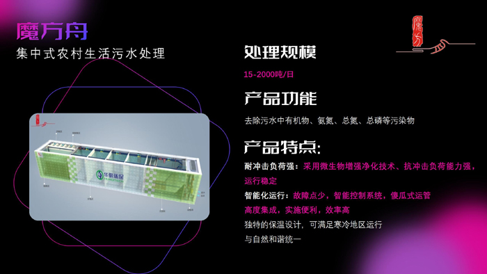 另外,還有針對小型分散式農(nóng)村生活污水處理場景的魔方格產(chǎn)品,具有能耗低、運行簡單穩(wěn)定兩大特色,日處理水量5噸的魔方格一天僅需一度電。