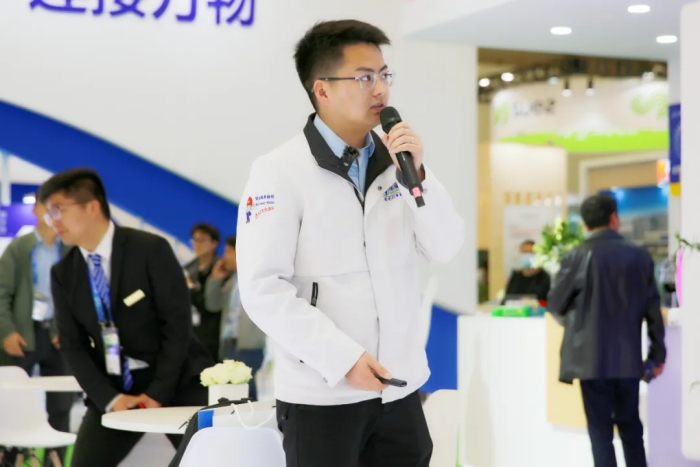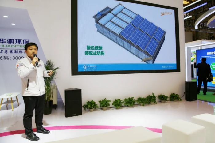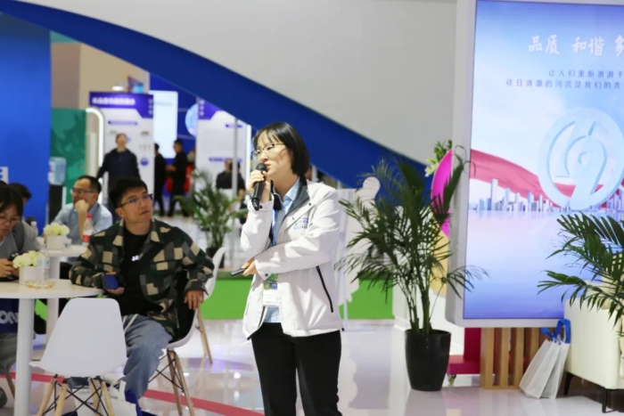 本屆環(huán)博會上,華騏環(huán)保積極與國內(nèi)外環(huán)保領(lǐng)域的專家學(xué)者和企業(yè)代表充分交流,共同探討環(huán)境污染治理領(lǐng)域的前沿技術(shù)與最新解決方案。華騏環(huán)保副總裁連宏偉在接受E20環(huán)境平臺采訪時指出,作為創(chuàng)業(yè)板上市公司、國家級“專精特新"小巨人企業(yè),華騏環(huán)保不斷提升自主創(chuàng)新水平,通過“一體多翼”的集團化戰(zhàn)略布局,堅持走技術(shù)產(chǎn)品化的高質(zhì)量發(fā)展之路,加快形成新質(zhì)生產(chǎn)力,以新技術(shù)、新產(chǎn)品創(chuàng)造新價值,以“高質(zhì)服務(wù)”擘畫未來,以“智慧賦能”擎鑄未來。本次環(huán)博會,華騏環(huán)保的八位產(chǎn)品經(jīng)理現(xiàn)場分享了“BAF智慧工藝的探索與實踐”、“綠色低碳裝配式污水處理廠”、“魔方智水多維場景污水治理的實踐與思考”、“iMagcoH磁混凝沉淀池技術(shù)及應(yīng)用”、“iDebed深床反硝化濾池技術(shù)及應(yīng)用”、“臭廢氣收集及處理系統(tǒng)解決方案”、“智能控制器在環(huán)保領(lǐng)域的應(yīng)用與探討”等核心技術(shù)與裝備的精彩內(nèi)容,充分展現(xiàn)了華騏環(huán)保在水務(wù)行業(yè)領(lǐng)域的綜合實力,亮點紛呈、內(nèi)涵豐富,吸引了眾多與會嘉賓及業(yè)內(nèi)人士駐足聆聽、互動交流。
