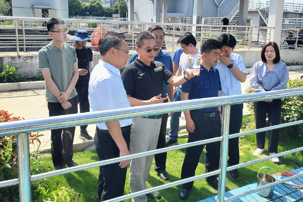 宜興市長(zhǎng)陳壽彬(中)與鄭俊教授(左一)親切交流2021年6月29日,宜興市長(zhǎng)陳壽彬率市水利局、生態(tài)環(huán)境局、公用事業(yè)局等相關(guān)部門領(lǐng)導(dǎo)赴距離太湖最近的污水處理廠——宜興市華…